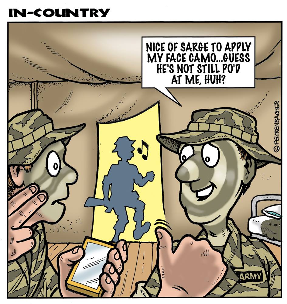 Phil enlisted in the Army in 1965 where he served for years in Vietnam. He became a graphic designer and has worked for the state of Oregon for 26 years. He retired in 2003 and started the Cartoon "In-Country". The cartoons reflect his experiences during his tour of duty in South Vietnam.
