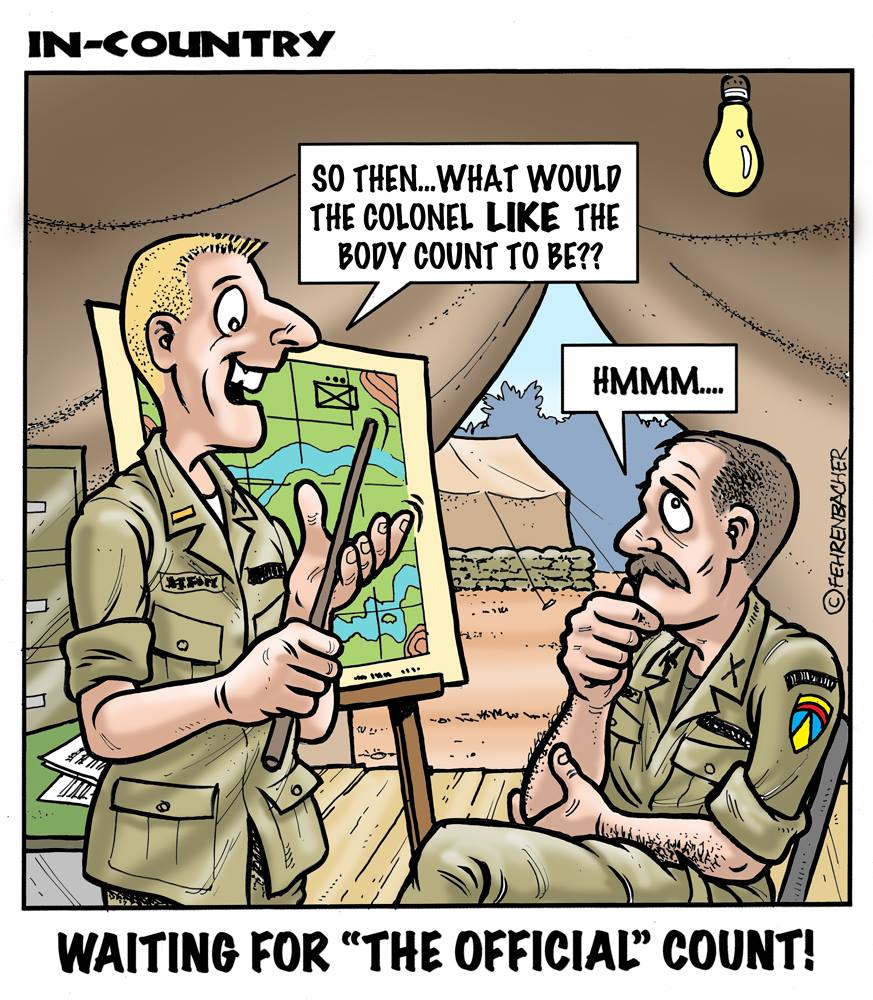 Phil enlisted in the Army in 1965 where he served for years in Vietnam. He became a graphic designer and has worked for the state of Oregon for 26 years. He retired in 2003 and started the Cartoon "In-Country". The cartoons reflect his experiences during his tour of duty in South Vietnam.