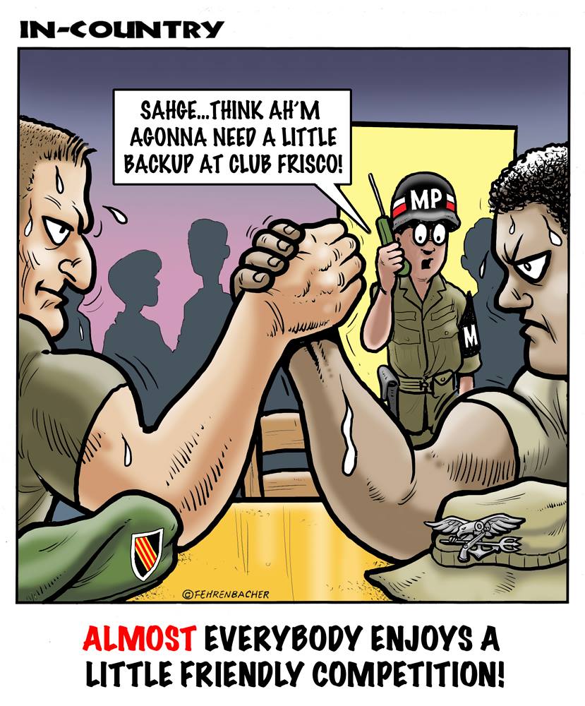Phil enlisted in the Army in 1965 where he served for years in Vietnam.  He became a graphic designer and has worked for the state of Oregon for 26 years.  He retired in 2003 and started the Cartoon "In-Country".  The cartoons reflect his experiences during his tour of duty in South Vietnam.
