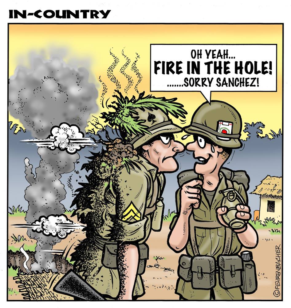 Phil enlisted in the Army in 1965 where he served for years in Vietnam. He became a graphic designer and has worked for the state of Oregon for 26 years. He retired in 2003 and started the Cartoon "In-Country". The cartoons reflect his experiences during his tour of duty in South Vietnam.
