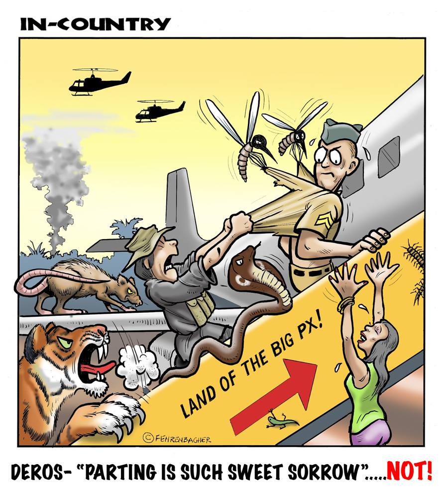 Phil enlisted in the Army in 1965 where he served for years in Vietnam.  He became a graphic designer and has worked for the state of Oregon for 26 years.  He retired in 2003 and started the Cartoon "In-Country".  The cartoons reflect his experiences during his tour of duty in South Vietnam.