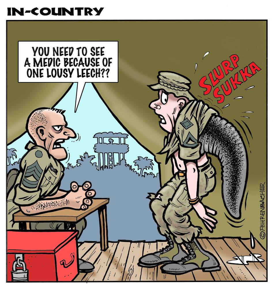 Phil enlisted in the Army in 1965 where he served for years in Vietnam. He became a graphic designer and has worked for the state of Oregon for 26 years. He retired in 2003 and started the Cartoon "In-Country". The cartoons reflect his experiences during his tour of duty in South Vietnam.