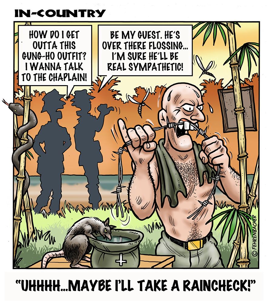 Phil enlisted in the Army in 1965 where he served for years in Vietnam.  He became a graphic designer and has worked for the state of Oregon for 26 years.  He retired in 2003 and started the Cartoon "In-Country".  The cartoons reflect his experiences during his tour of duty in South Vietnam.
