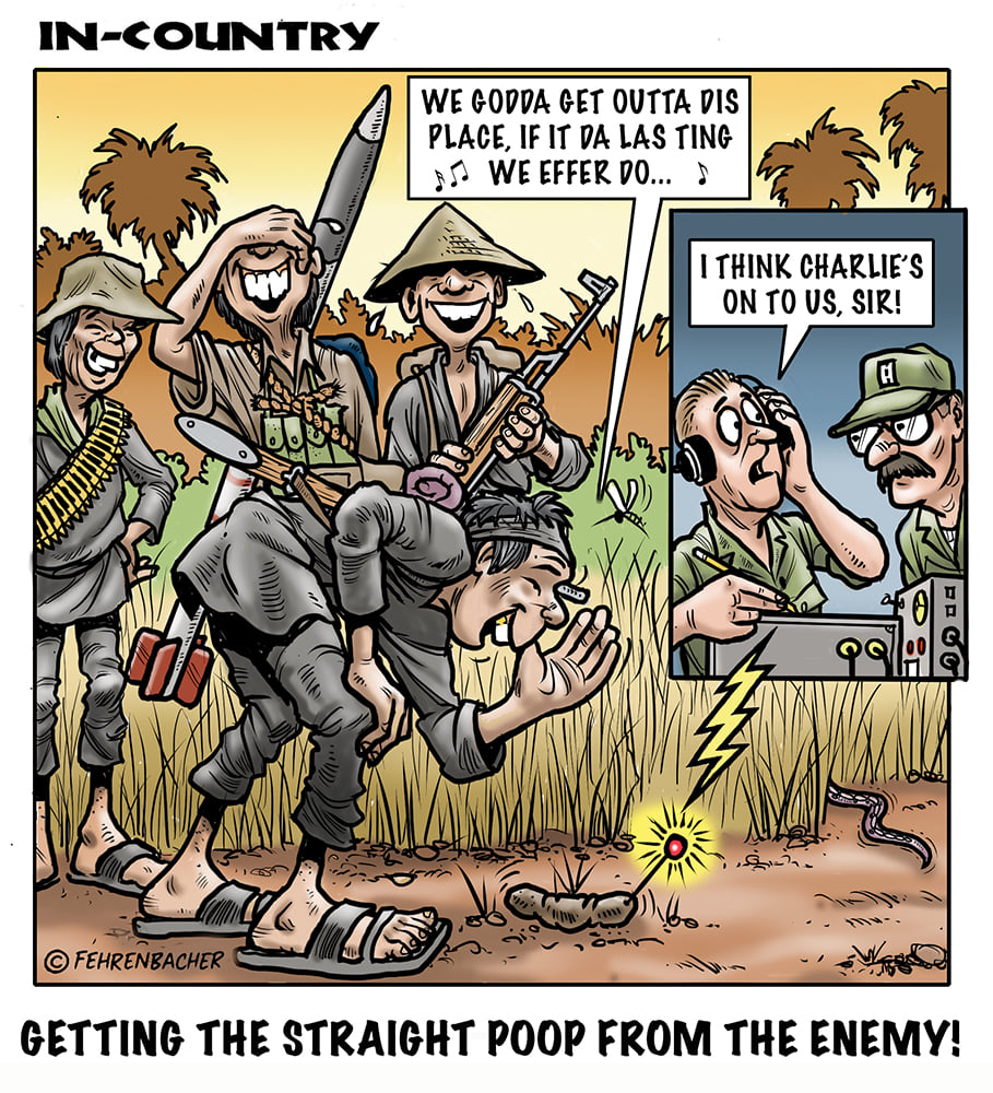 Phil enlisted in the Army in 1965 where you served for years in Vietnam. He became a graphic designer and has worked for the state of Oregon for 26 years. He retired in 2003 and started the Cartoon "In-Country". The cartoons reflect his experiences during his tour of duty in South Vietnam.