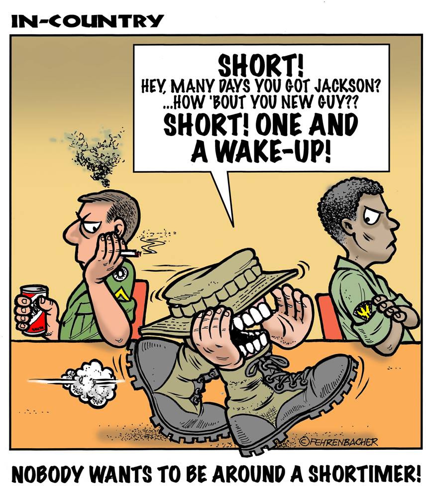 Phil enlisted in the Army in 1965 where he served for years in Vietnam. He became a graphic designer and has worked for the state of Oregon for 26 years. He retired in 2003 and started the Cartoon "In-Country". The cartoons reflect his experiences during his tour of duty in South Vietnam.