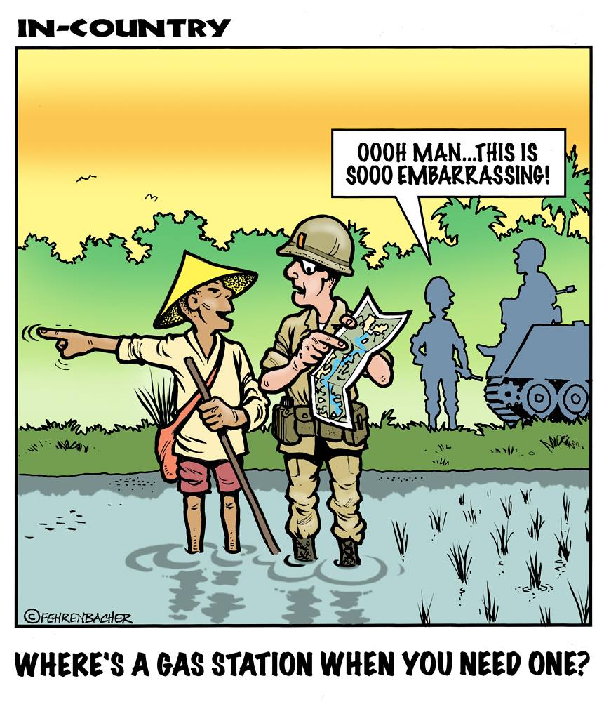 Phil enlisted in the Army in 1965 where he served for years in Vietnam. He became a graphic designer and has worked for the state of Oregon for 26 years. He retired in 2003 and started the Cartoon "In-Country". The cartoons reflect his experiences during his tour of duty in South Vietnam.